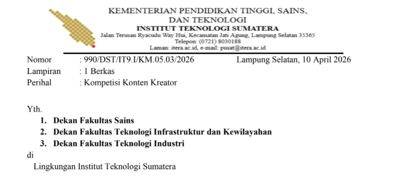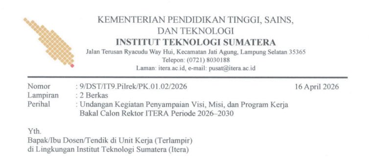 Jakarta, 6 April 2026 — Dua dosen Institut Teknologi Sumatera (Itera), dipercaya...