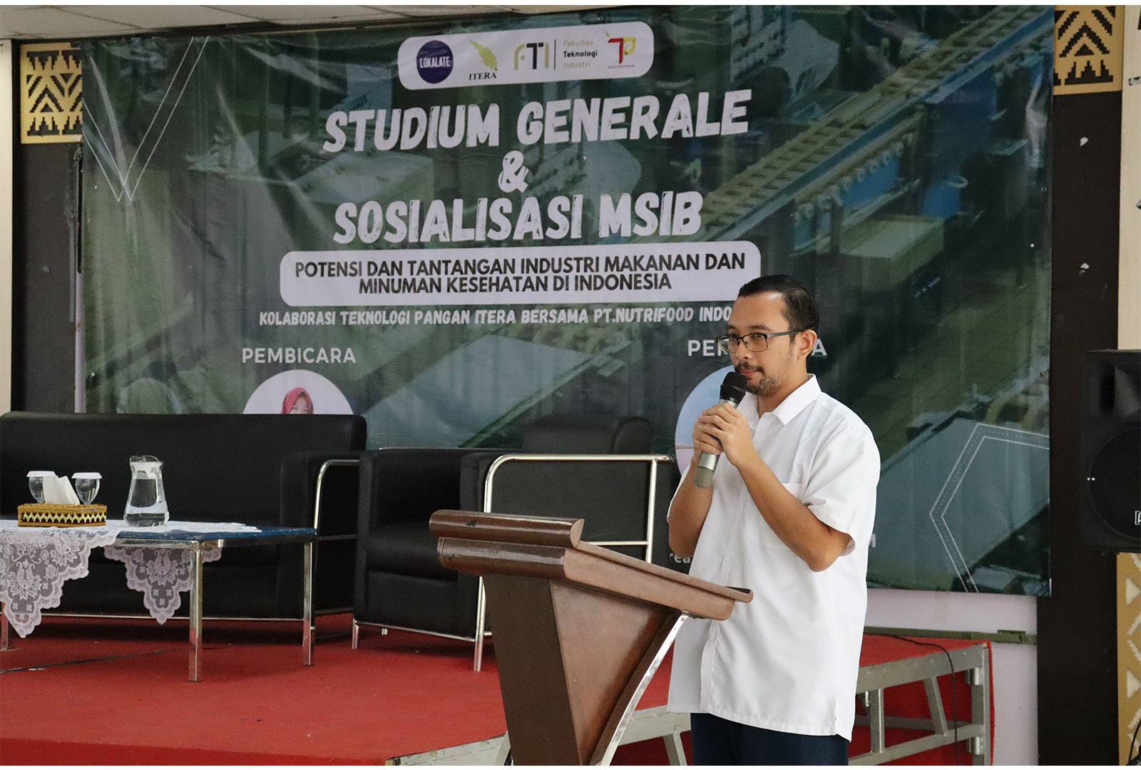 Setelah penandatanganan PKS, acara dilanjutkan dengan sesi Studium Generale yang dibawakan oleh dua pembicara yang ahli di bidangnya. Pembicara pertama, Ibu Masayu Nur Ulfa, S.Gz., M.Si., Dosen Program Studi Teknologi Pangan ITERA, membahas tentang potensi industri makanan dan minuman kesehatan di Indonesia serta tantangan-tantangan yang dihadapi. Dalam presentasinya, Ibu Masayu menyoroti pentingnya inovasi dan penelitian dalam mengembangkan produk-produk yang tidak hanya memenuhi kebutuhan konsumen tetapi juga mendukung kesehatan masyarakat.