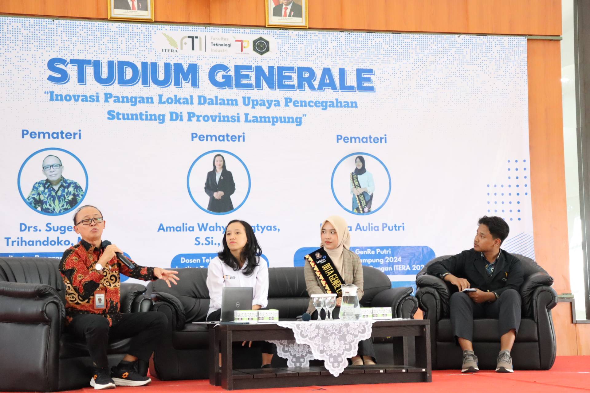 Program Studi Teknologi Pangan Institut Teknologi Sumatera (Itera) menyelenggarakan Studium Generale dengan tema “Inovasi Pangan Lokal Dalam Upaya Pencegahan Stunting di Provinsi Lampung” dan Perjanjian Kerja Sama Institut Teknologi Sumatera oleh rektor dengan BKKBN. Kegiatan dilaksanakan secara luring dengan mengundang 3 narasumber yaitu Bapak Drs. Sugeng Trihandoko, M.Si., Ibu Amalia Wahyuningtyas, S.Si., M.Si. dan Fadila Aulia Putri bertempat di aula Gedung Kuliah Umum 2 Institut Teknologi Sumatera yang membahas mengenai implementasi program pencegahan stunting dan bagaimana peran pangan lokal.