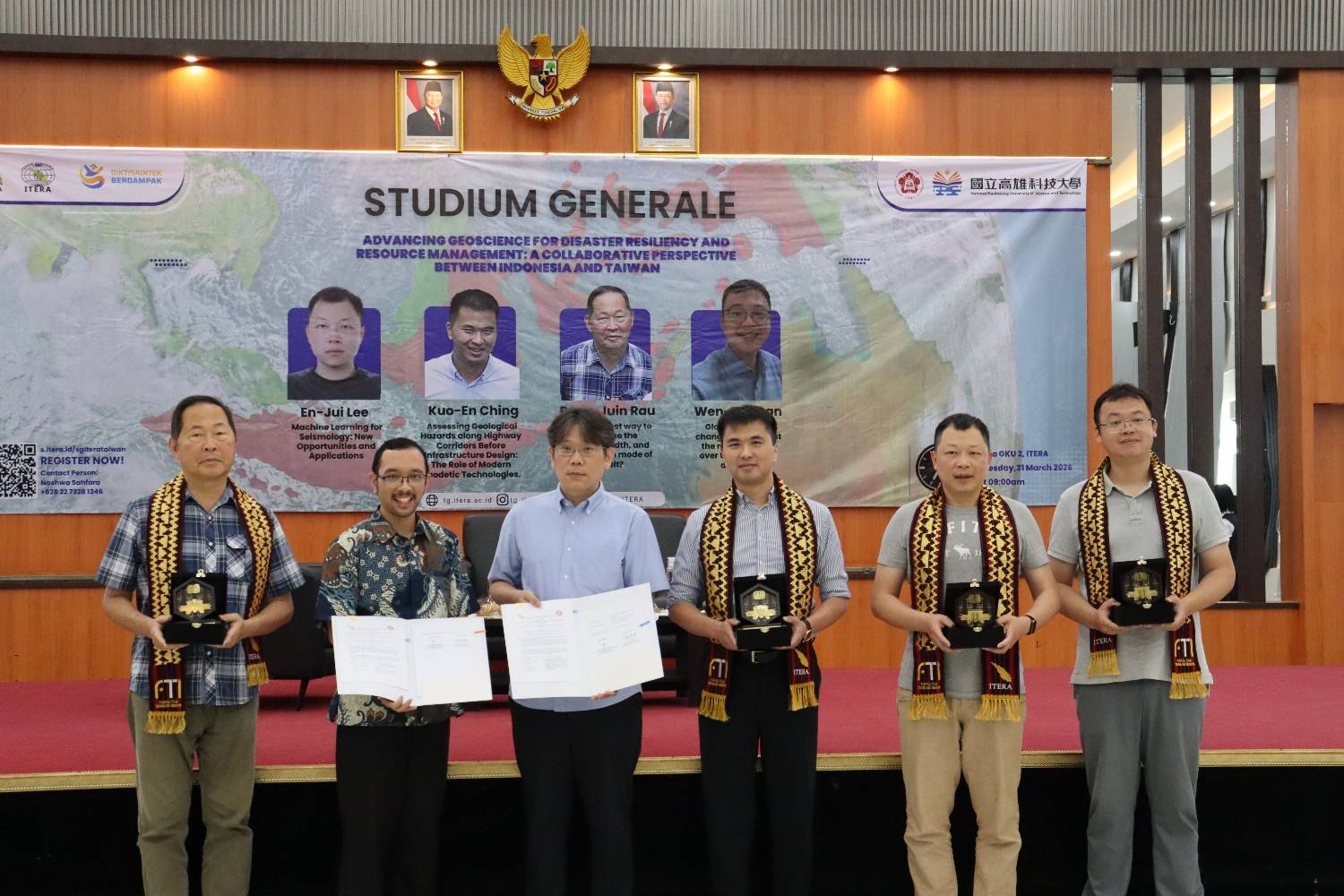 LAMPUNG SELATAN, 31 Maret 2026 – Program Studi Teknik Geofisika, Fakultas Teknologi Industri (FTI) Institut Teknologi Sumatera (Itera) sukses menyelenggarakan studium generale internasional dengan menghadirkan jajaran profesor dari dua universitas terkemuka di Taiwan, yaitu National Cheng Kung University (NCKU) dan National Kaohsiung University of Science and Technology (NKUST).